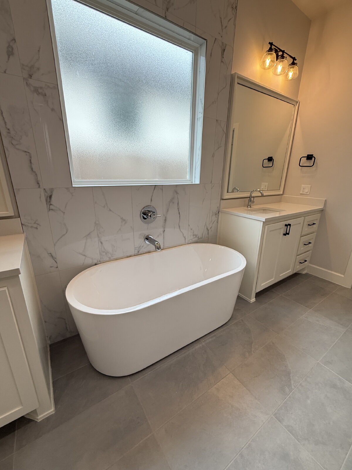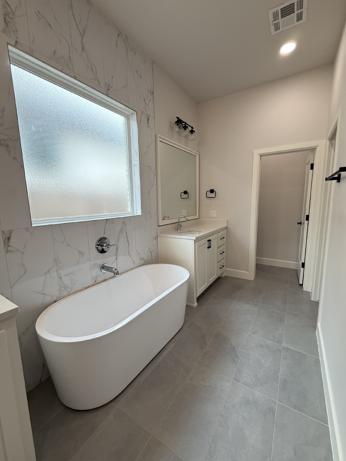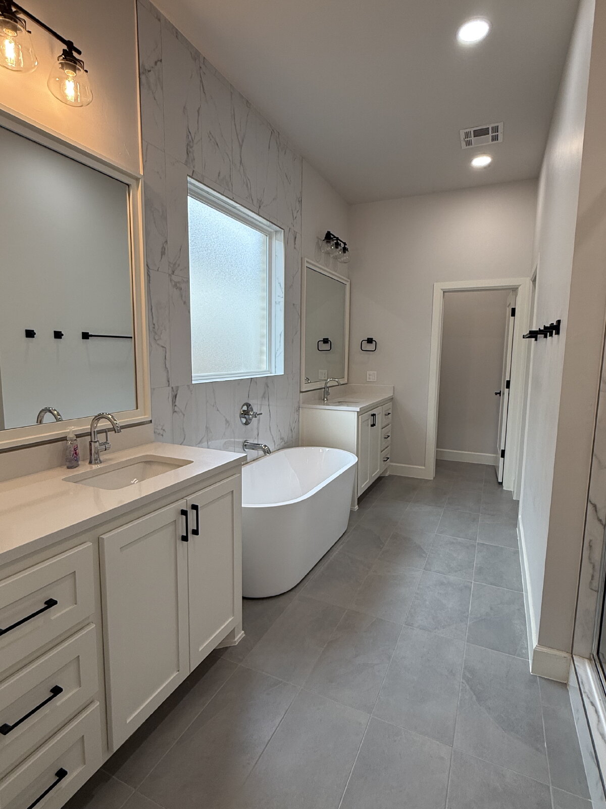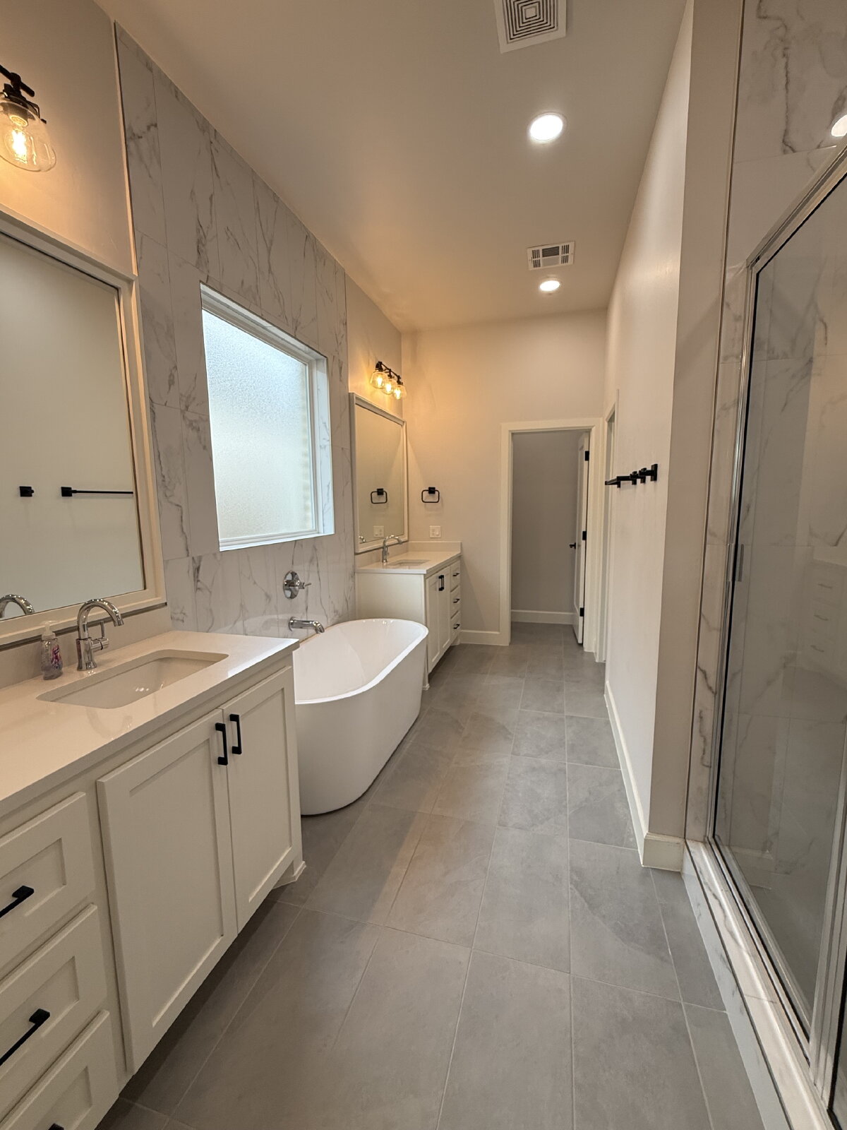 This home offers a true split floor plan, with secondary bedrooms and bathrooms on one side, while the private owner’s suite is tucked away on the other. The primary bathroom feels like a retreat with a freestanding tub, walk-in shower, and beautifully finished countertops.